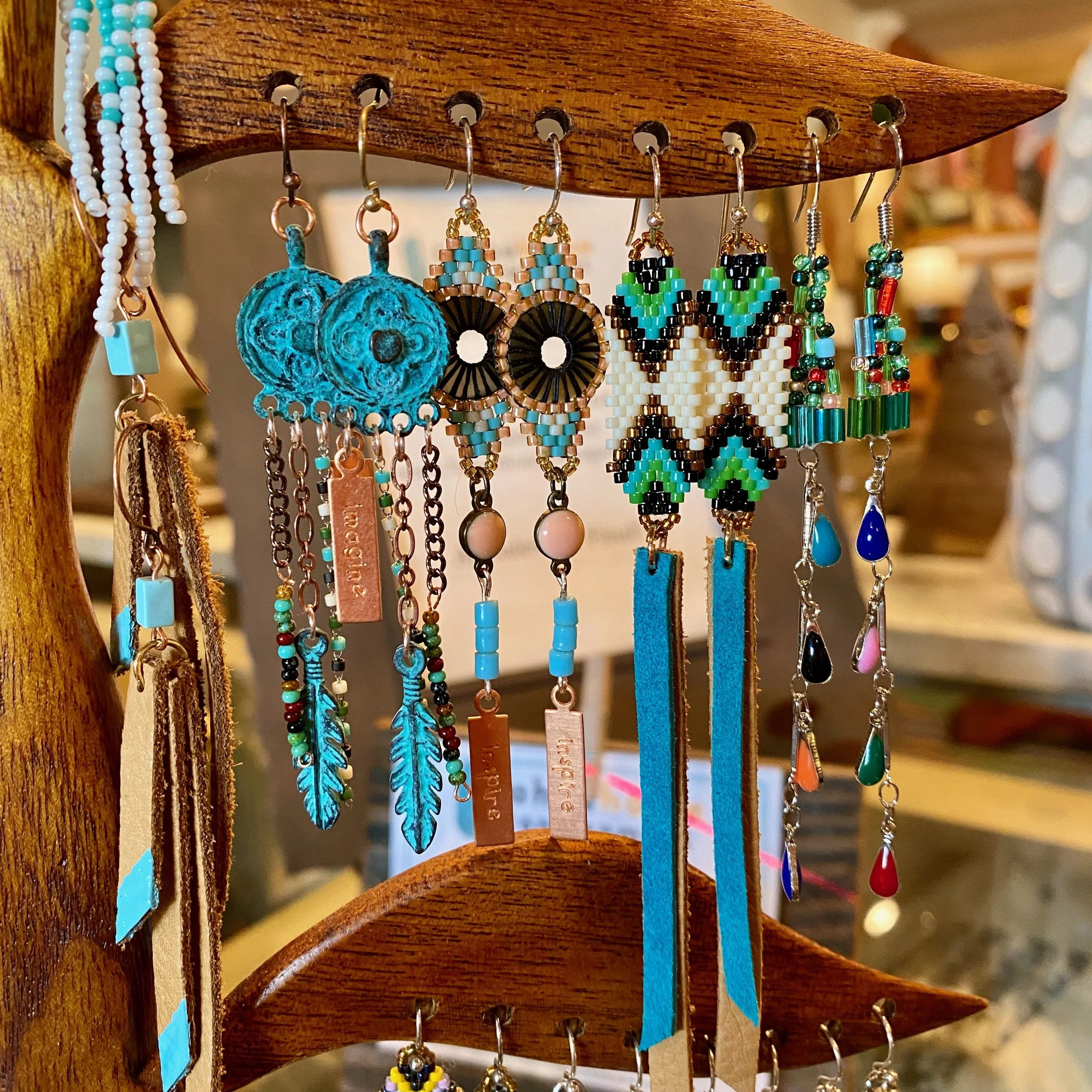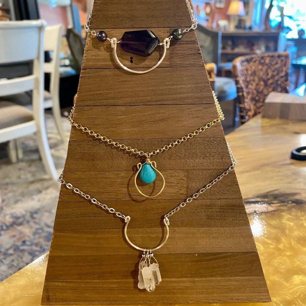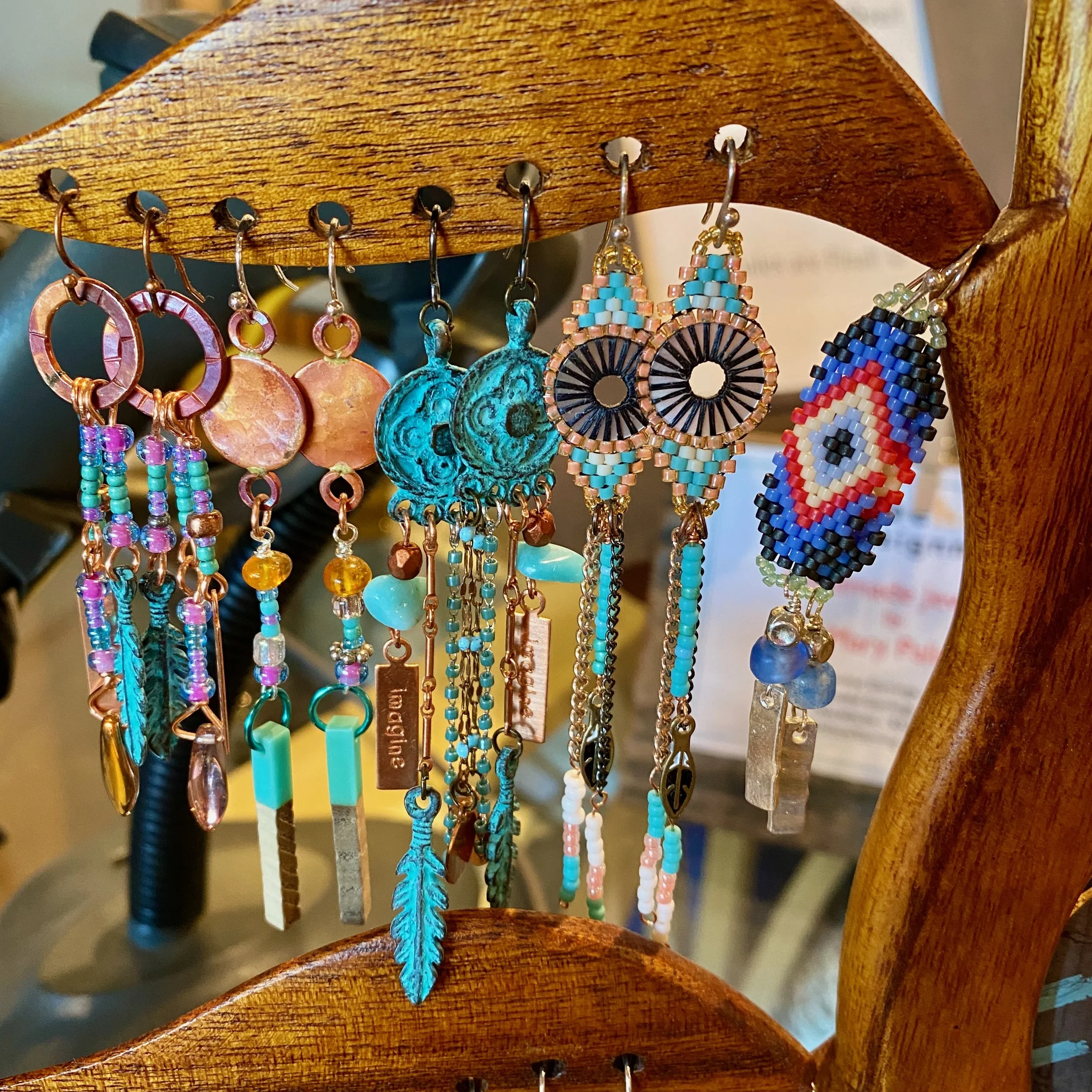 “I have been saying to myself for some time, ‘I think I could make that!’ when browsing jewelry during my travels around town or around the world (and this has lead to an extensive personal collection of earrings and necklaces, which I cannot ever possibly wear entirely!) The day I walked into Tahoe Home Consignment wearing my latest creation of earrings - changed my whole thought about making jewelry to sell. Now, instead of making gifts, I get to spend my retired educator days creating and discovering happy mistakes that end up on the earring tree or necklace holder for sale.