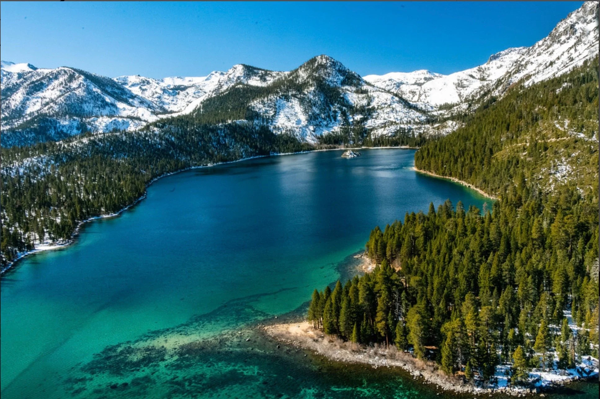 “Everyday, Tahoe reveals her clandestine grays and her brilliant palette of blues. I am awed by the mountains arguing with the weather and the finch ignoring the storm. Being an avid hiker, and skier, I ready myself for the beauty and color to be frozen through angles and light.